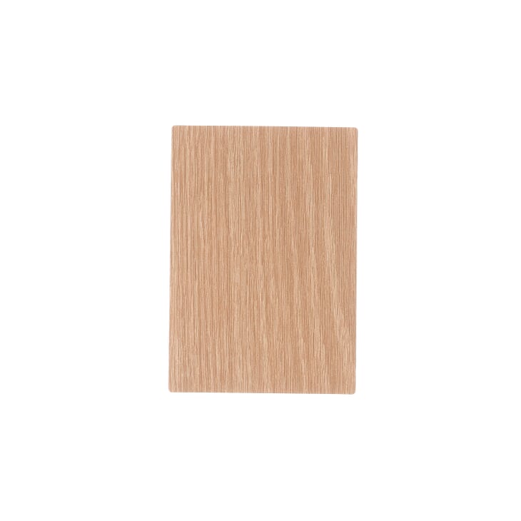 This is a refined and subtle light brown|low-contrast oak laminate design. Its soft close-grain structure consists of fine lines and feathery cathedrals. The approximate design repeat width is 32.5 inches; the approximate design repeat length is 42.5 inches.