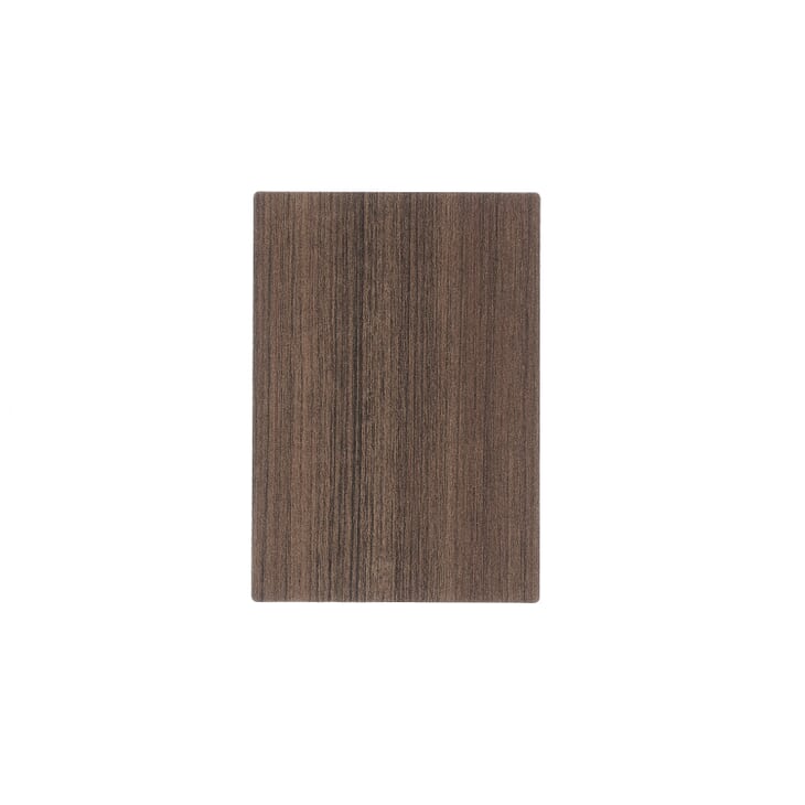 This is a teak wood-grain laminate design in a smoky gray and brown|with straight graining and black ticking. The approximate design repeat length is 51 inches; the approximate design repeat width is 34.5 inches.