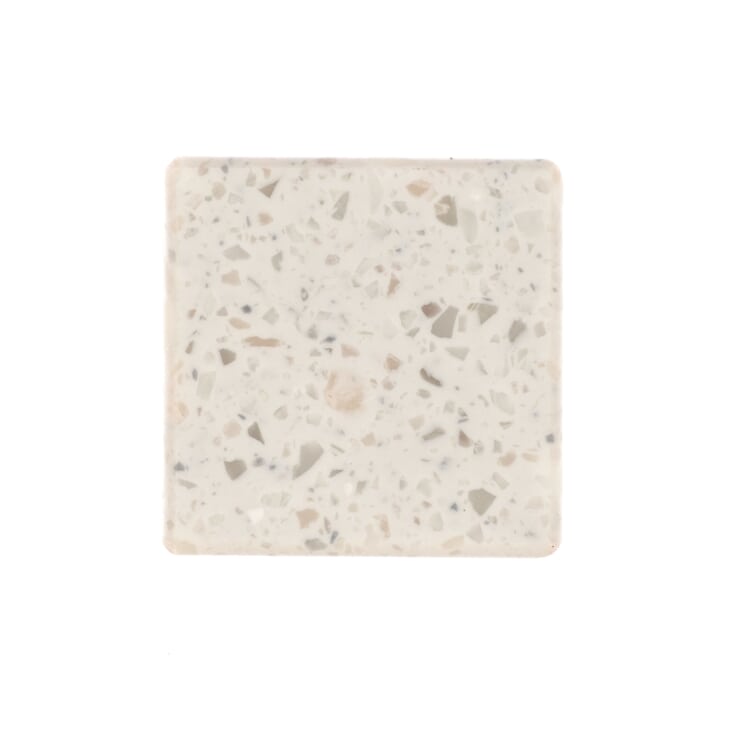 A beautiful design in warm white with medium particulates in translucent white, grey and brown.