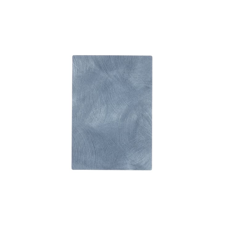 This is a large-scale swirling brush effect in a midtone blue laminate design. The approximate design repeat width is 25.5 inches; the approximate design repeat length is 43 inches.