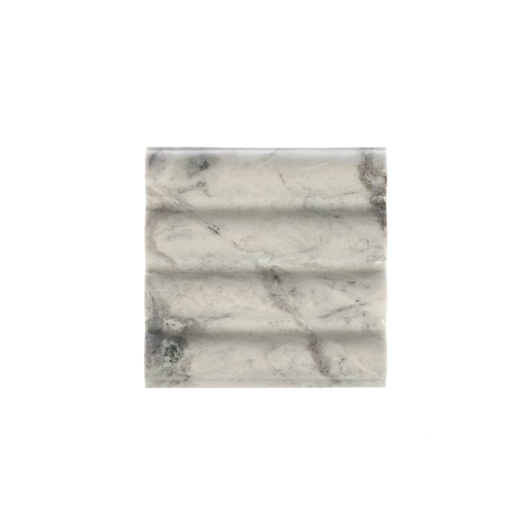 Belcaro captures the interplay of light and shadow within this dimensional tile collection. The soft curve of the fluted field, coupled with the stone’s distinct veining, gives a sense of movement. The pleated detail adds a sense of drama, with the sharpness of the edges contrasted with the natural stone. Both designs create a strong statement to any interior space.