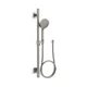 This all-in-one kit includes the Awaken G110 1.75-gpm multifunction handshower, a 24-inch slidebar, and a 60-inch smooth hose. Advanced spray performance delivers four distinct sprays - wide coverage, intense drenching, targeted massage, or reduced-flow spray - with a smooth rotation of a thumb tab. Ergonomic design makes for superior comfort and ease of use, with ideal balance and weight in the hand. The artfully sculpted sprayface reveals simple, architectural forms that complement contemporary and minimalist baths.