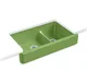The Whitehaven apron-front kitchen sink features a streamlined and versatile farmhouse style to complement any decor. Perfect for remodeling projects, it has a shortened apron that allows for installation on most new or existing 36-inch standard cabinetry. The Self-Trimming® design requires only a simple rough cut, overlapping the cabinet face for beautiful results and easy installation. A low barrier divides the two compartments, making it easy to wash and rinse large items while still keeping the two basins separate. Crafted from enameled cast iron, this sink resists chipping, cracking, or burning for years of beauty and reliable performance.