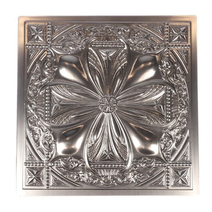 Avalon Ceiling Tiles are made from our robust Signature Series 0.030-inch-thick vinyl, and are molded directly from an original, historic tin ceiling tile design. These flexible tiles can be mounted to a ceiling surface using adhesive, installed below existing mineral fiber tiles to reface an existing ceiling, or used as drop ceiling tiles in both standard 1-inch and slimline 9/16-inch T-bar grid systems. They are Class A fire-rated, 100% recyclable, completely waterproof, Greenguard Gold certified for indoor air quality and made in the USA.