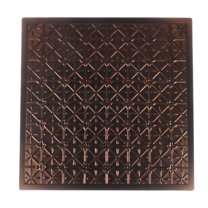 Continental Ceiling Tiles are made from our robust Signature Series 0.030-inch-thick vinyl, and are molded directly from an original, historic tin ceiling tile design. These flexible tiles can be installed below existing mineral fiber tiles to reface an existing ceiling, or used as drop ceiling tiles in both standard 1-inch and slimline 9/16-inch T-bar grid systems. They are Class A fire-rated, 100% recyclable, completely waterproof, Greenguard Gold certified for indoor air quality and made in the USA.