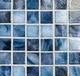 Seven colors are available in our Las Playas collection. Each color has its own individual characteristics that include color movement, texture, with gold iridescent finishes. Colors shown are in our 7/8inx7/8in Straight Set. No two sheets are the same, variation will occur within each color from sheet to sheet. We offer five different sizes in our six mm thick tiles. You can choose any of our seven colors in any of our five sizes for your project!