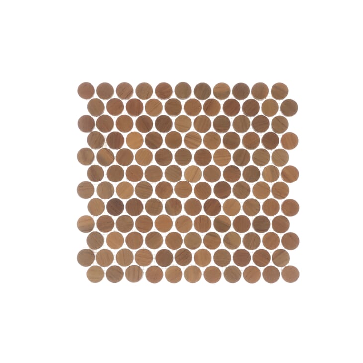 Midcentury Modern teak tile is the first FSC-certified reclaimed teakwood tile and mosaic, offered in an array of shapes and colors unparalleled in the market. Midcentury Modern teak tile's broad offering of mesh-mounted mosaics and patterns is inspired by a rich range of stylistic genres, from classic European wood flooring shapes to early 20th-century geometric motifs and even midcentury modernism. Beautiful when used alone, or combined with stone, glass or ceramic tiles, this tile will create spaces of warmth and timeless luxury.