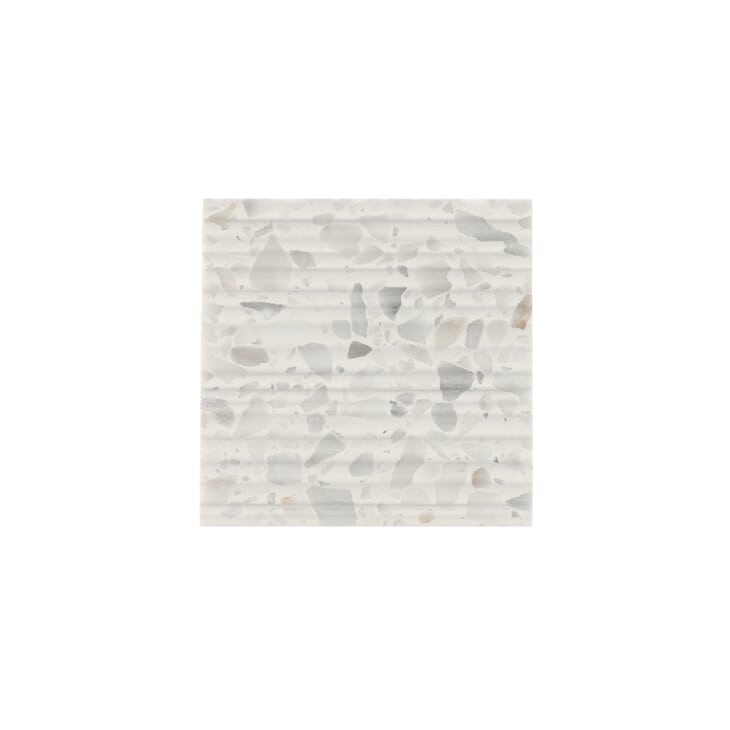 Terrazzo Form is a reinterpretation of the classic terrazzo tile. The contrast of the chips and flakes of stone with the textured surface brings a modern sense of prestige to any space. The velvet finish has a natural undulation echoing the stone forms within the design and giving an organic sensation underfoot. The contrast between the delineated pleats of the waterfall design or the microplanes of the Arela design produces a subtle dimension and tactile quality.