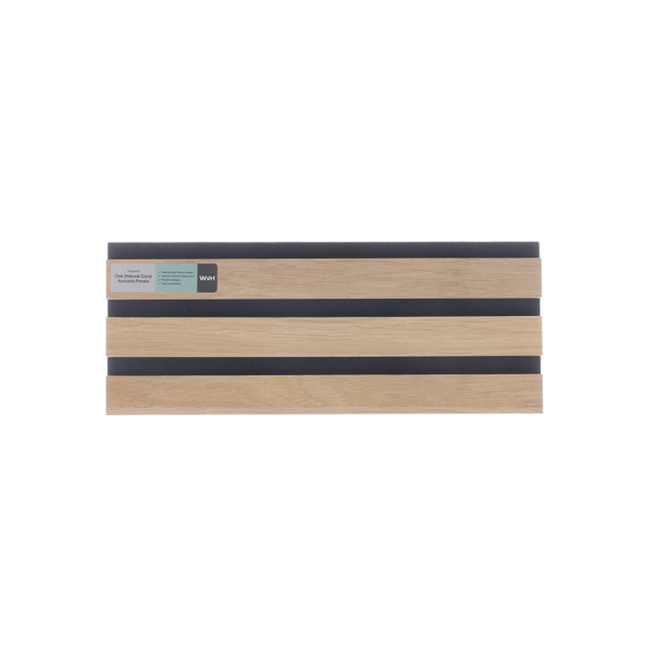 The Slat panel® Collection offers an exquisitely designed wood-strip, decorative wall and ceiling panels with superior acoustic properties. These panels effortlessly enhance walls and ceilings, epitomizing contemporary elegance. Crafted with a luxurious, smooth, wood veneer finish, the natural wood range features sleek lamella strips mounted onto an innovative, eco-friendly acoustic felt material. The straightforward installation process allows for a swift transformation of any space. These panels are delivered unfinished, so we recommend applying a protective finish to the wood. Adding a finish also provides the opportunity to customize the color according to your preference. Various wood finishes can be employed, such as waxes, oils, lacquers and varnishes. Once applied, the wood's color and grain will immediately become more vibrant and rich. A unique feature of the natural core panel is the cream-colored, medium-density fiberboard, which deviates from our conventional black color. This distinctive aspect offers a more authentic solid wood appearance.