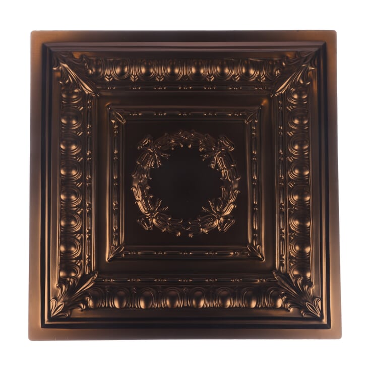 Empire Ceiling Tiles are made from our robust Signature Series 0.030-inch-thick vinyl, and are molded directly from an original, historic tin ceiling tile design. These flexible tiles can be mounted to a ceiling surface using adhesive, installed below existing mineral fiber tiles to reface an existing ceiling, or used as drop ceiling tiles in both standard 1-inch and slimline 9/16-inch T-bar grid systems. They are Class A fire-rated, 100% recyclable, completely waterproof, Greenguard Gold certified for indoor air quality and made in the USA.