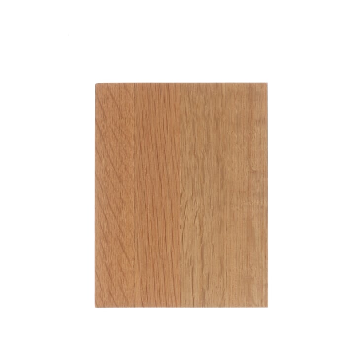 White Oak has become extremely popular for its durability, versatility, and timeless aesthetic. White Oak features white almond to medium brown hues, an open linear grain, and occasional medullary rays, which are silvery flecks or lines in the grain. It is often selected for its hardness and neutral tone. Janka hardness: 1,350 ibf.